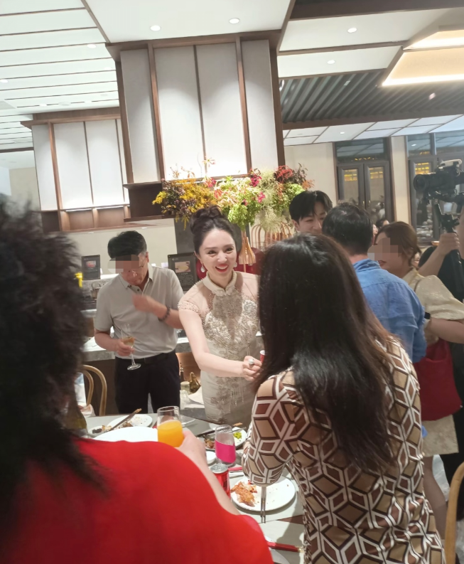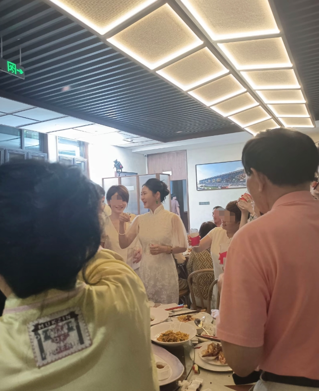 46岁董璇婚宴现场照, 穿纯白旗袍风采依旧, 新全家福曝光温馨有爱